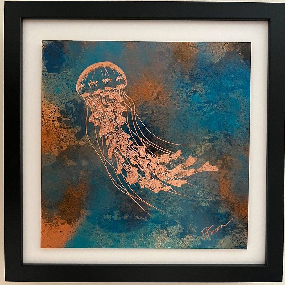 Paul works with a truly unique pairing of subjects and techniques to create his signature wildlife artworks. He takes sheets of metal as his canvases, and carefully corrodes them to produce textural images of his subjects. The artist utilises the patination process to produce colour and texture, befitting the creatures and environments he describes.